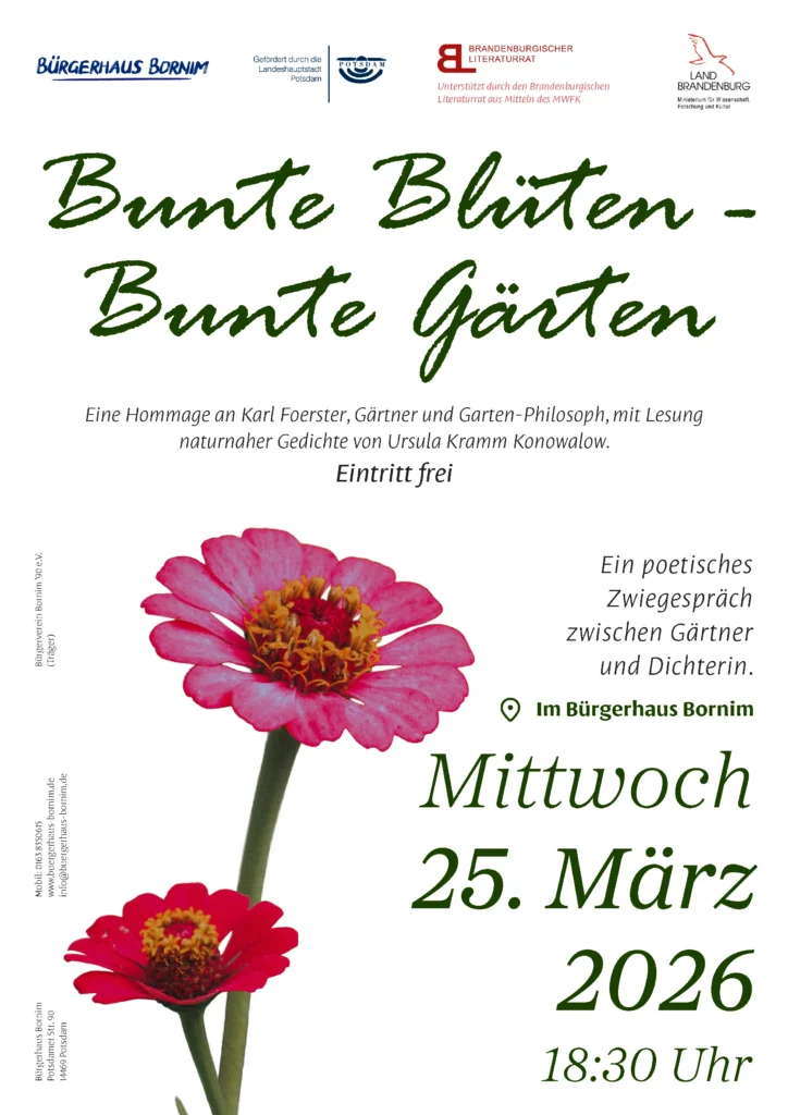 Gedichte, heiter und besinnlich, über Blumen, Gärten und Erinnerungen an den berühmten Gärtner Karl Foerster aus Bornim.