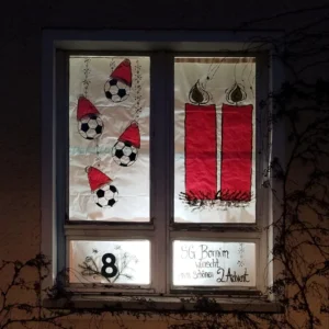 Die Fenster des Bürgerhauses Bornim erstrahlen auch dieses Jahr hoffentlich wieder dank vieler kreativer Hände mit schönen Adventsbildern.