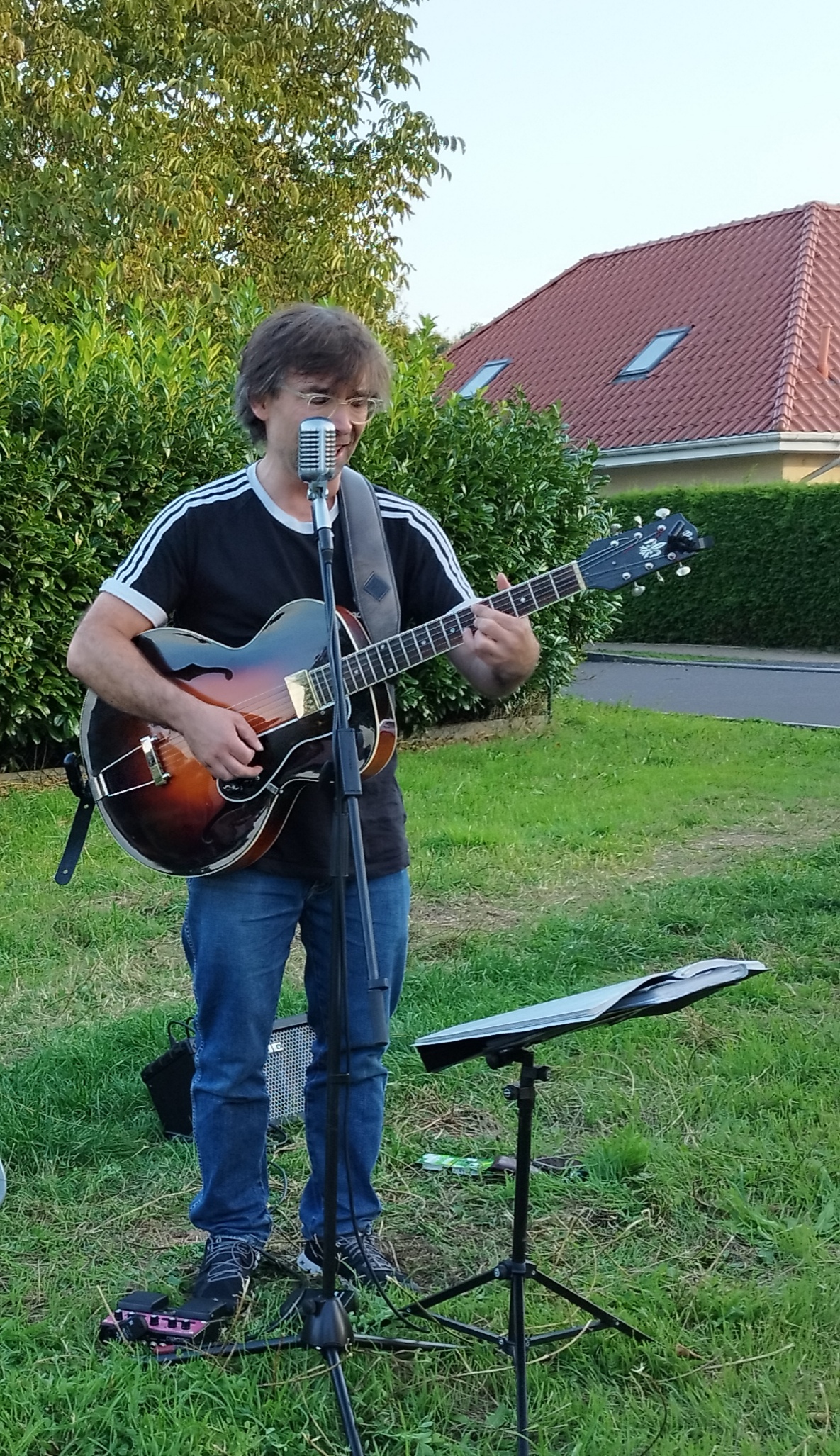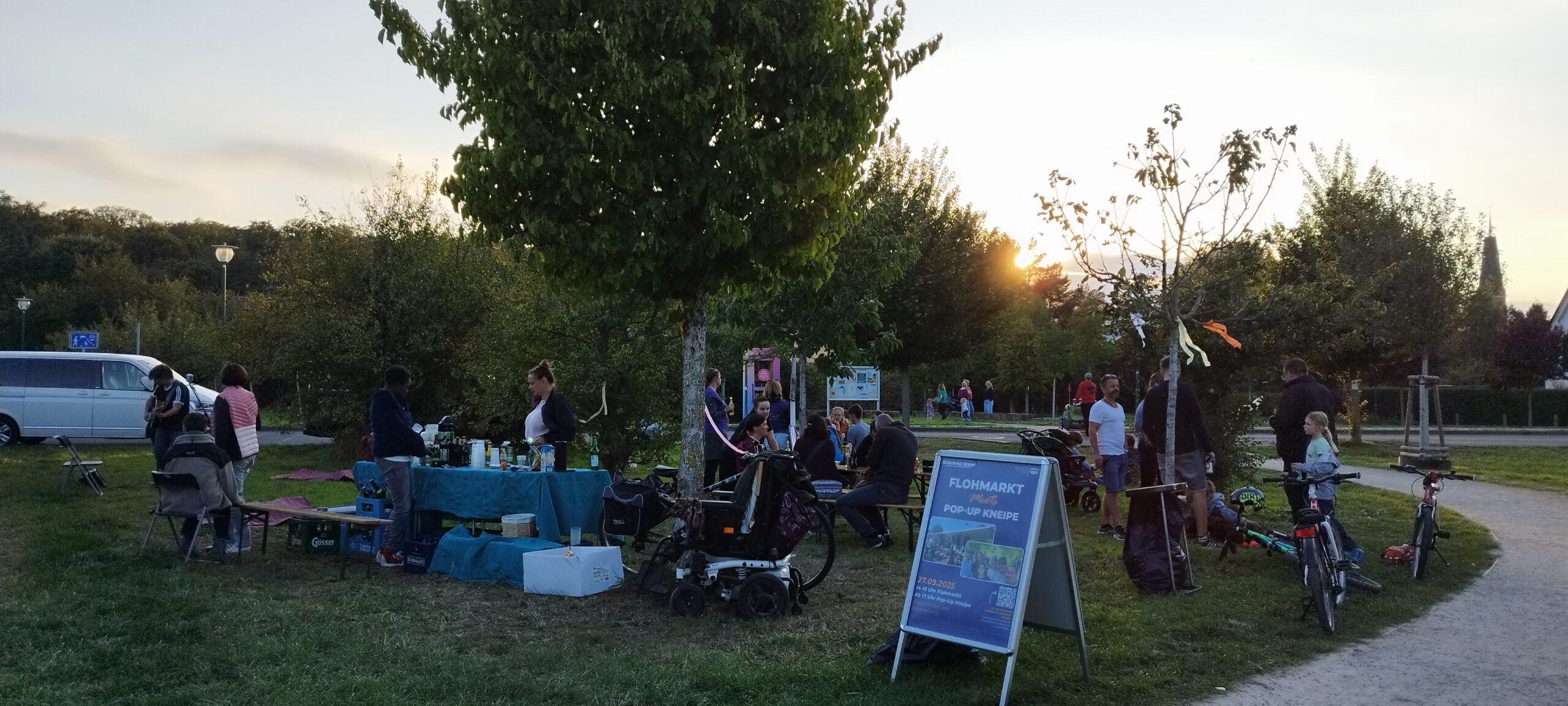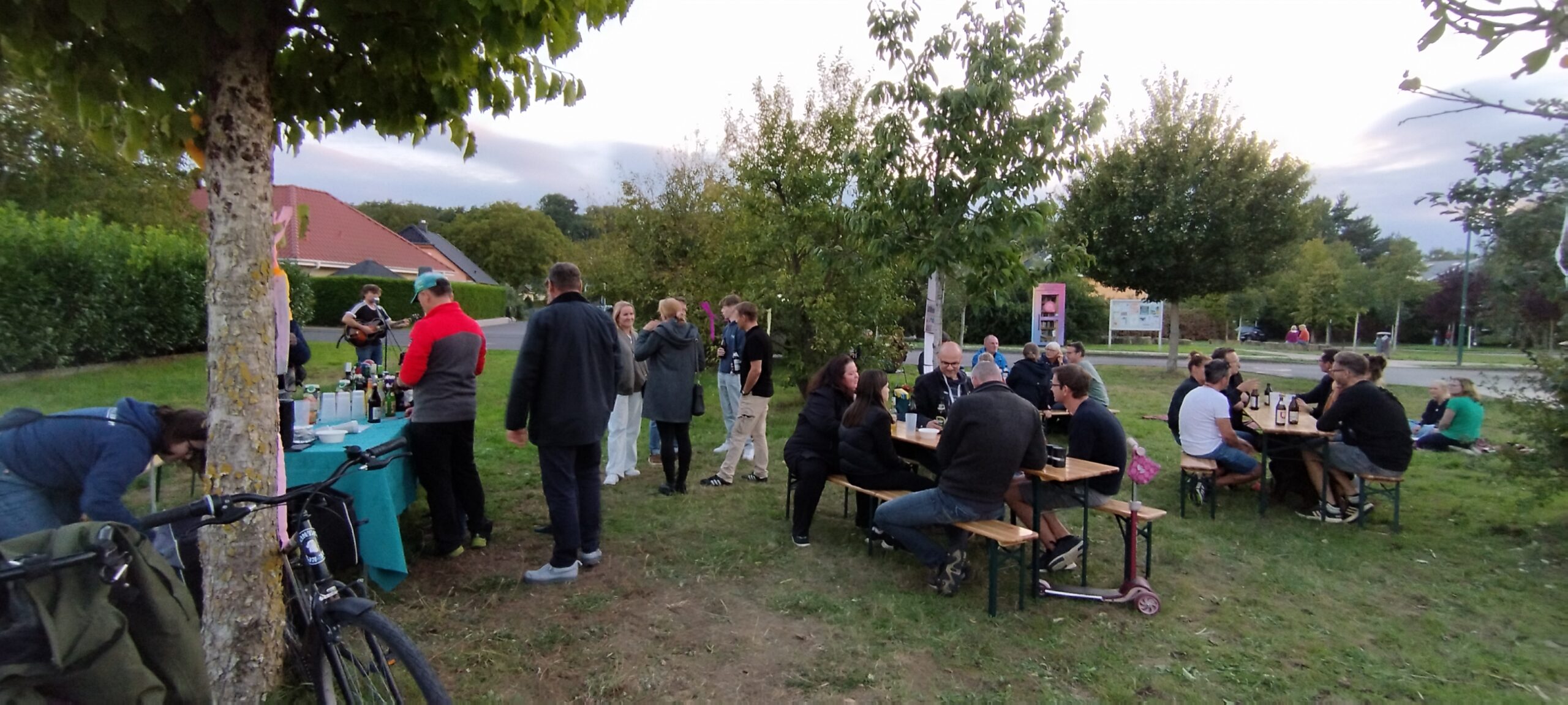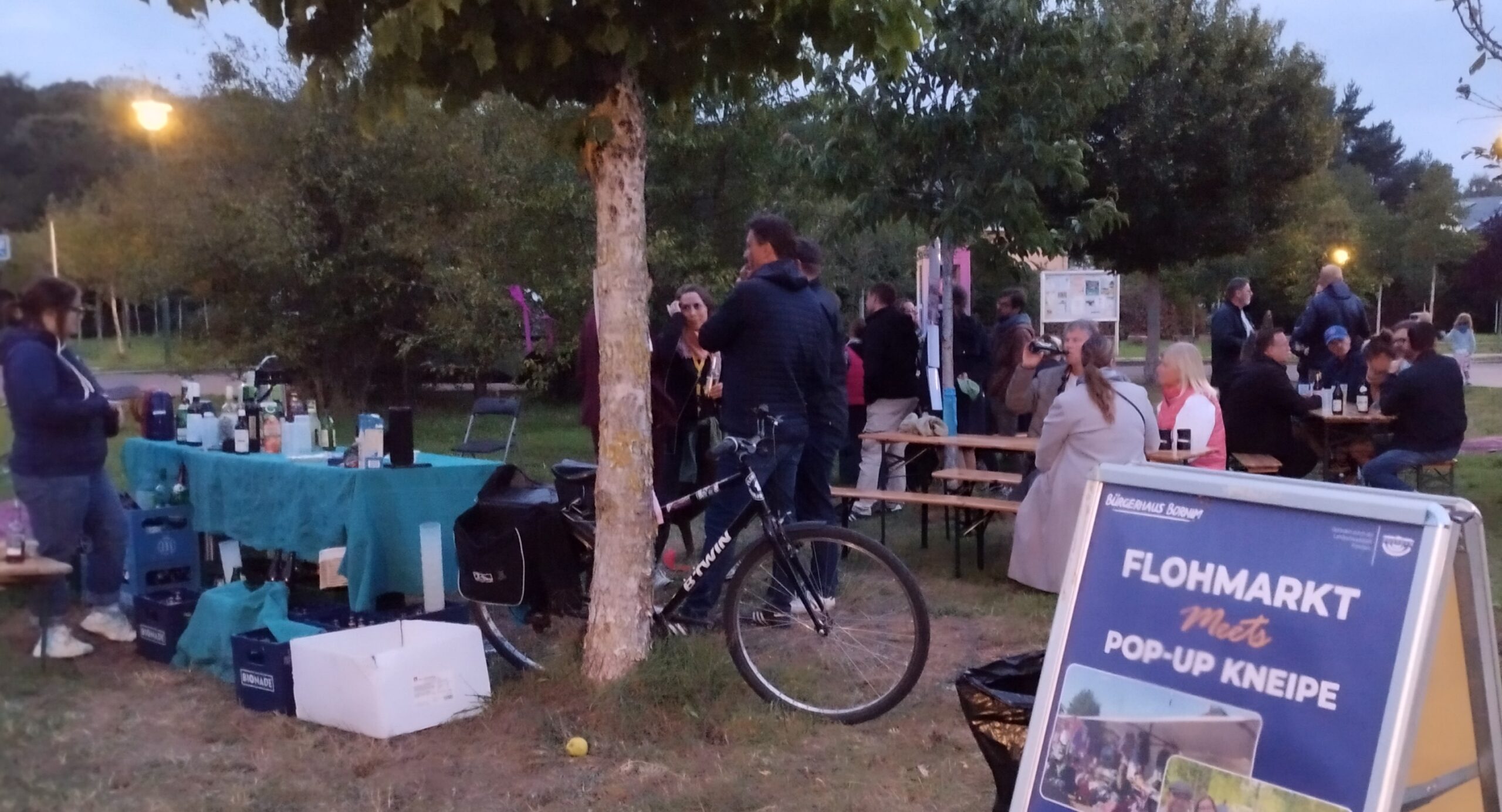 Um 17 Uhr verwandelte sich dann der Kaffee- und Kuchenstand vom BüH-Team dank Unterstützung unserer ehrenamtlichen Helfer:innen in den Tresen der „Bornimer Pop-Up Kneipe“. In geselliger Runde haben wir den Abend gemeinsam genossen und der Live-Musik von und mit Tony Blizessioni gelauscht.